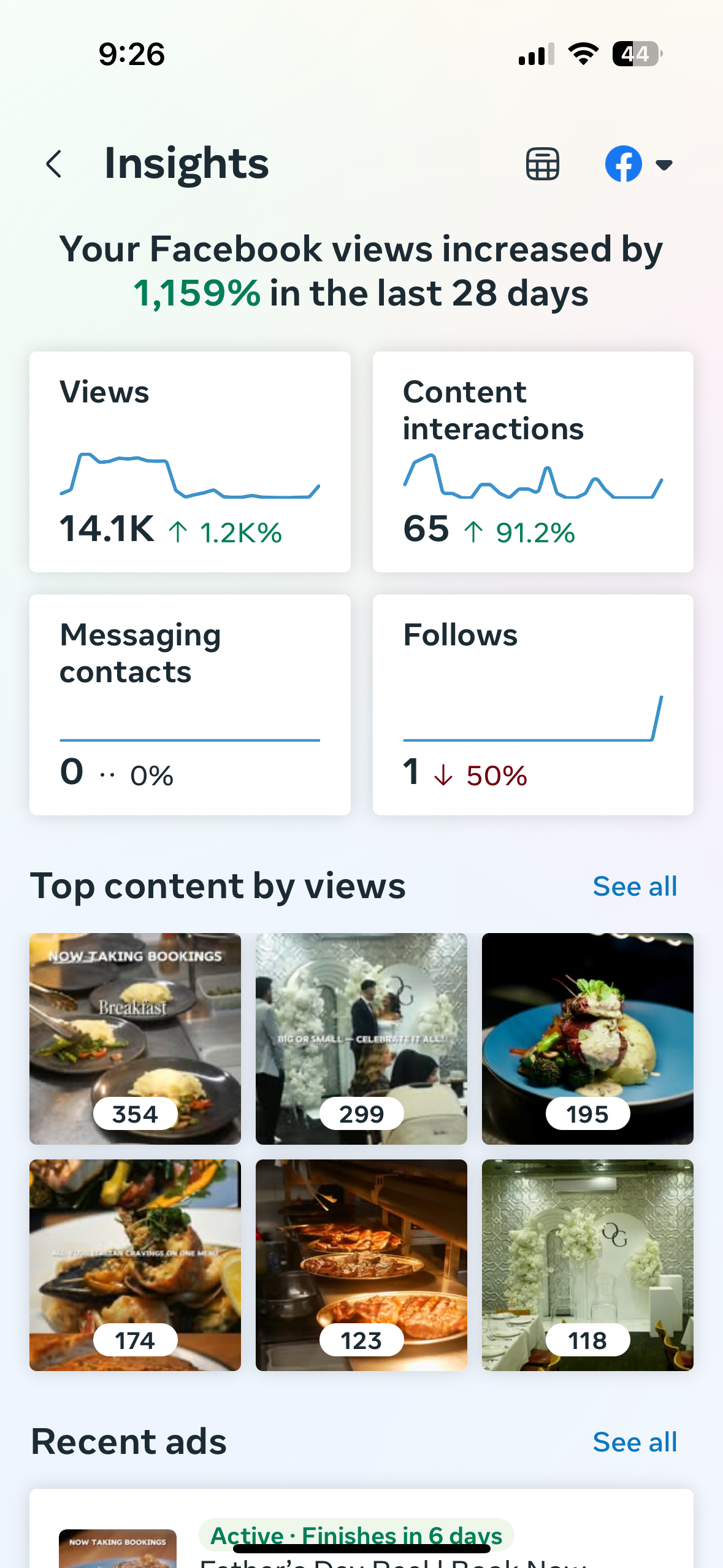 I’ve helped Melbourne restaurants generate 13+ leads in 2 weeks, drive 134 landing page views in a single week, and boost profile visibility by up to 1,200%, turning clicks into booked tables within days.
